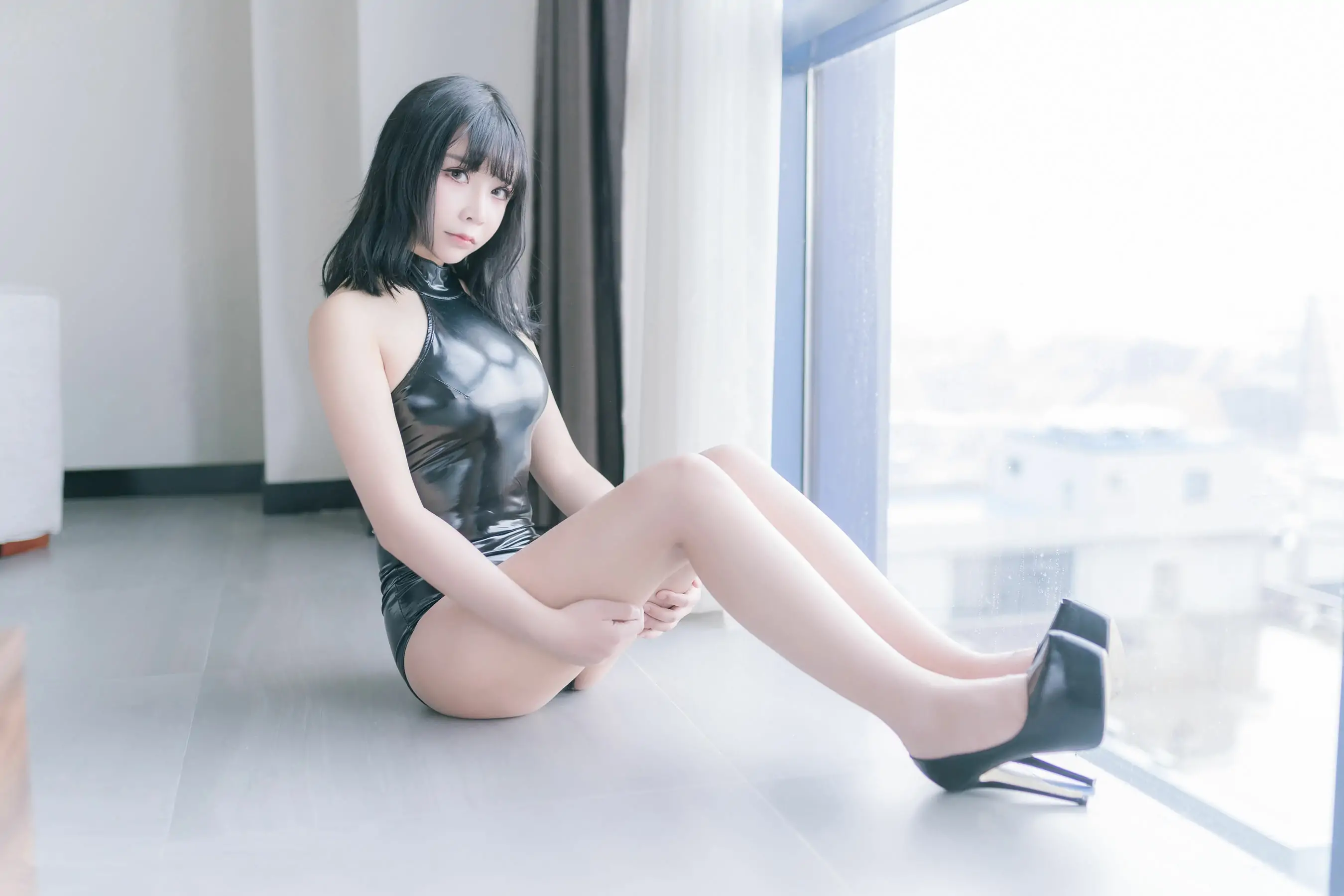 二次元妹子抱走莫子aa 黑胶高跟鞋(41P)