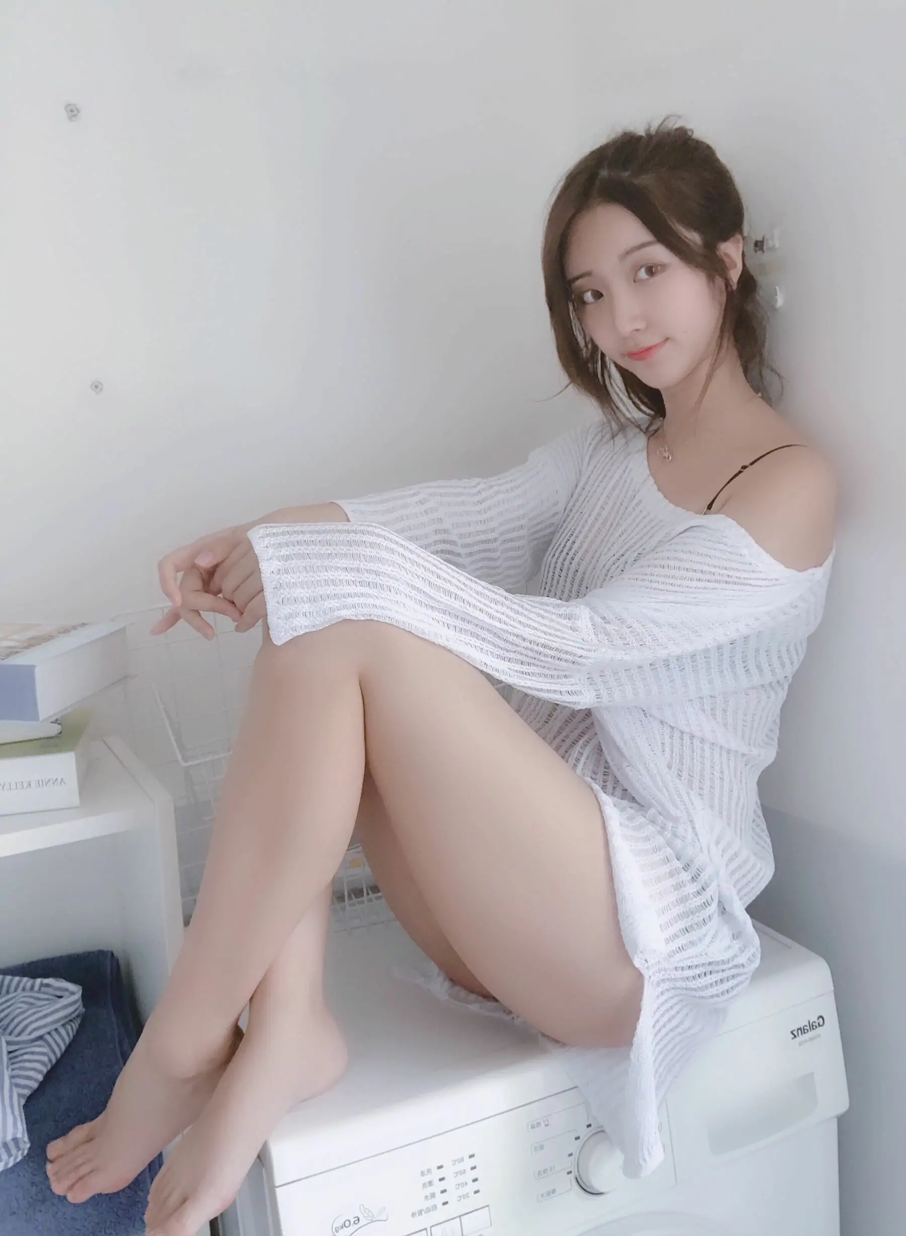 人气Coser黑川 白色洞洞毛衣(50P)