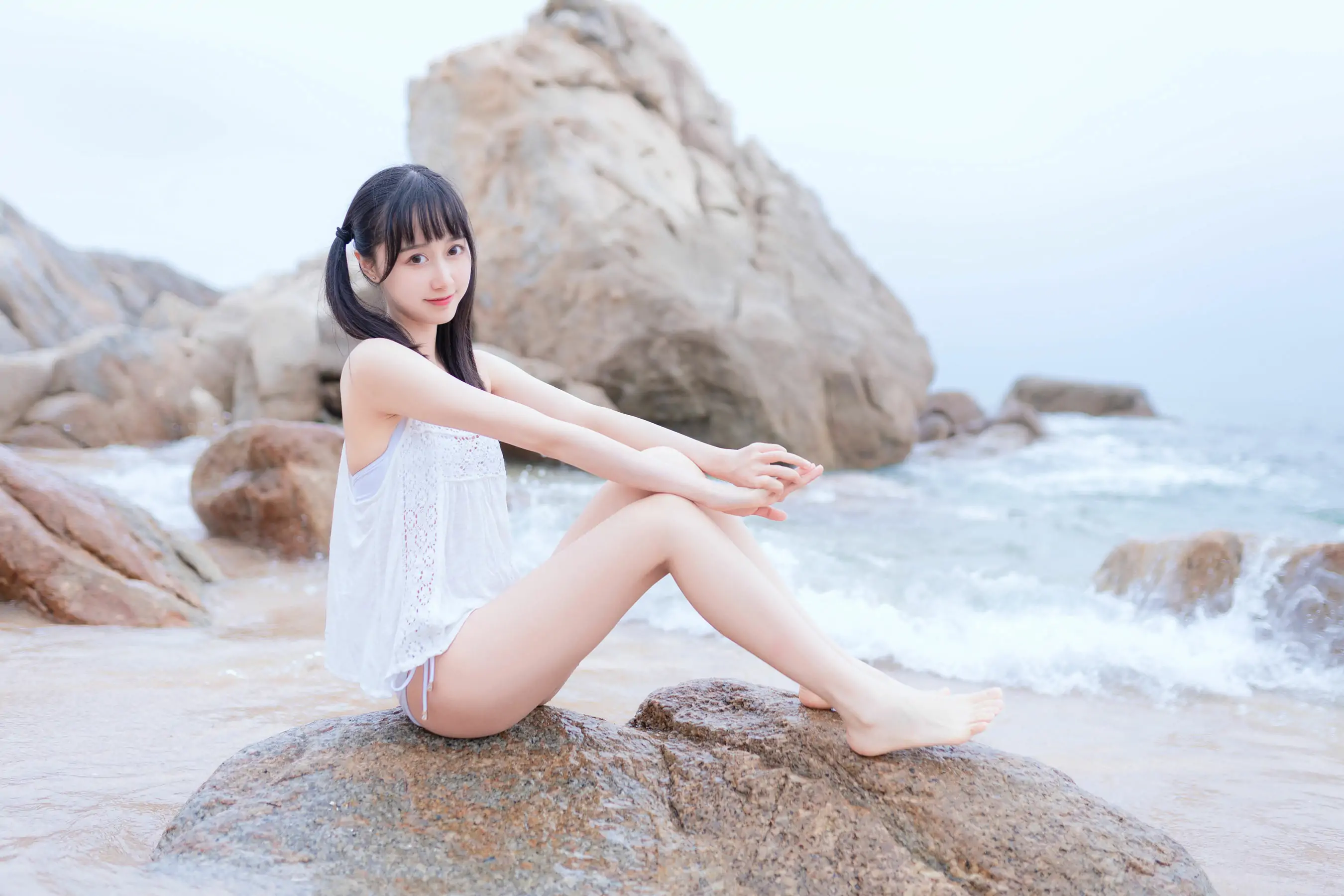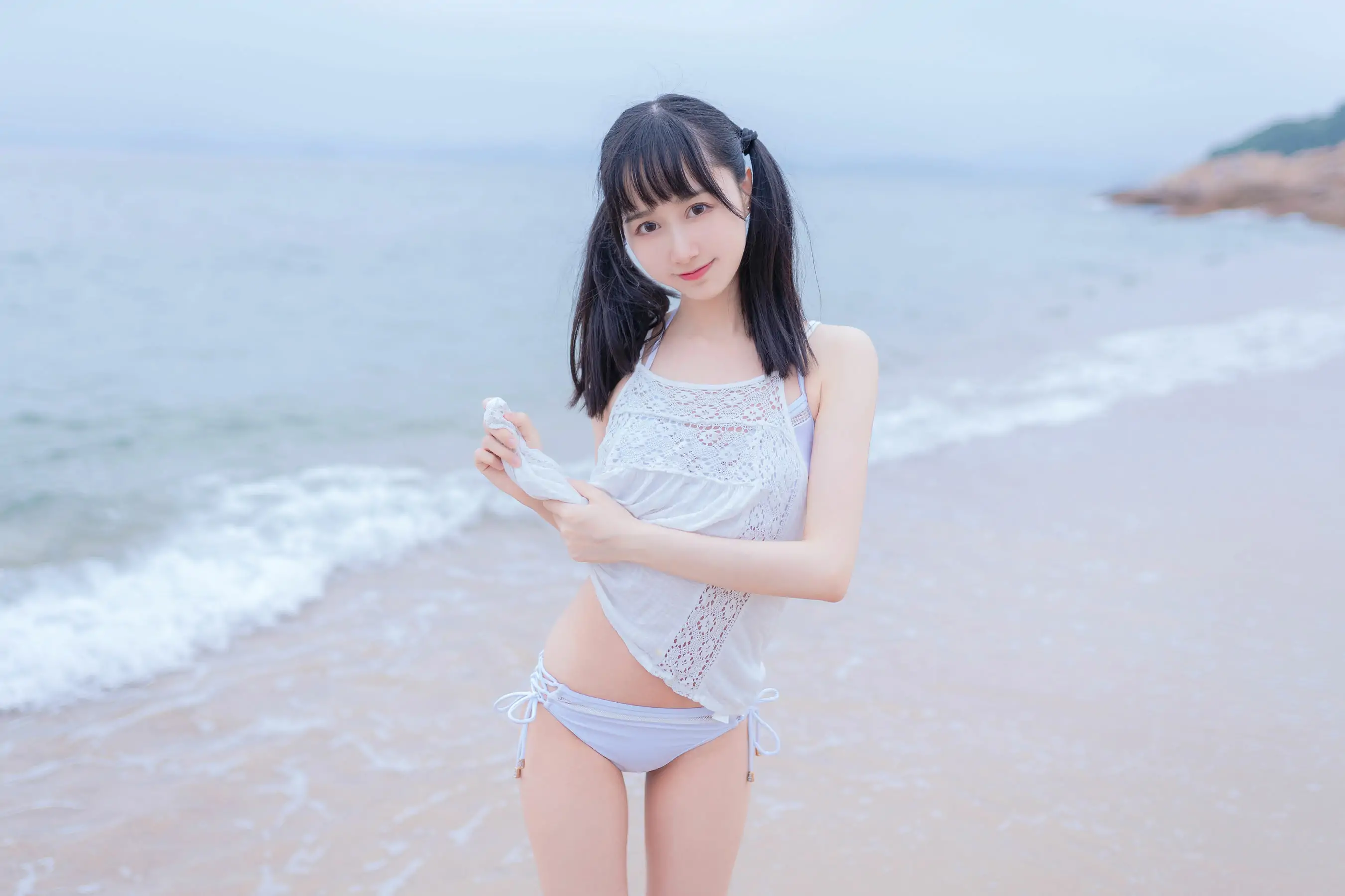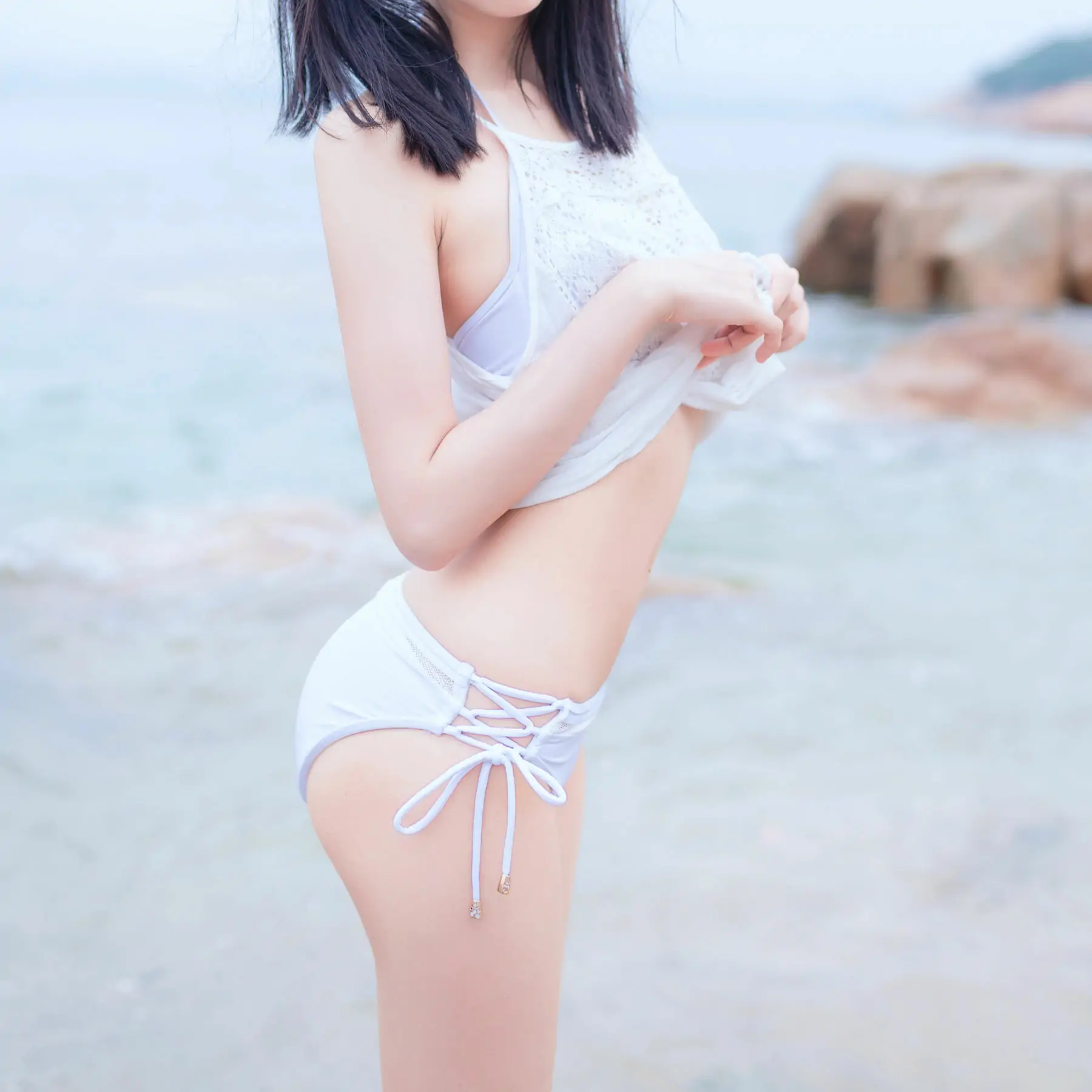 萌系小姐姐木绵绵OwO 海边白色比基尼(30P)