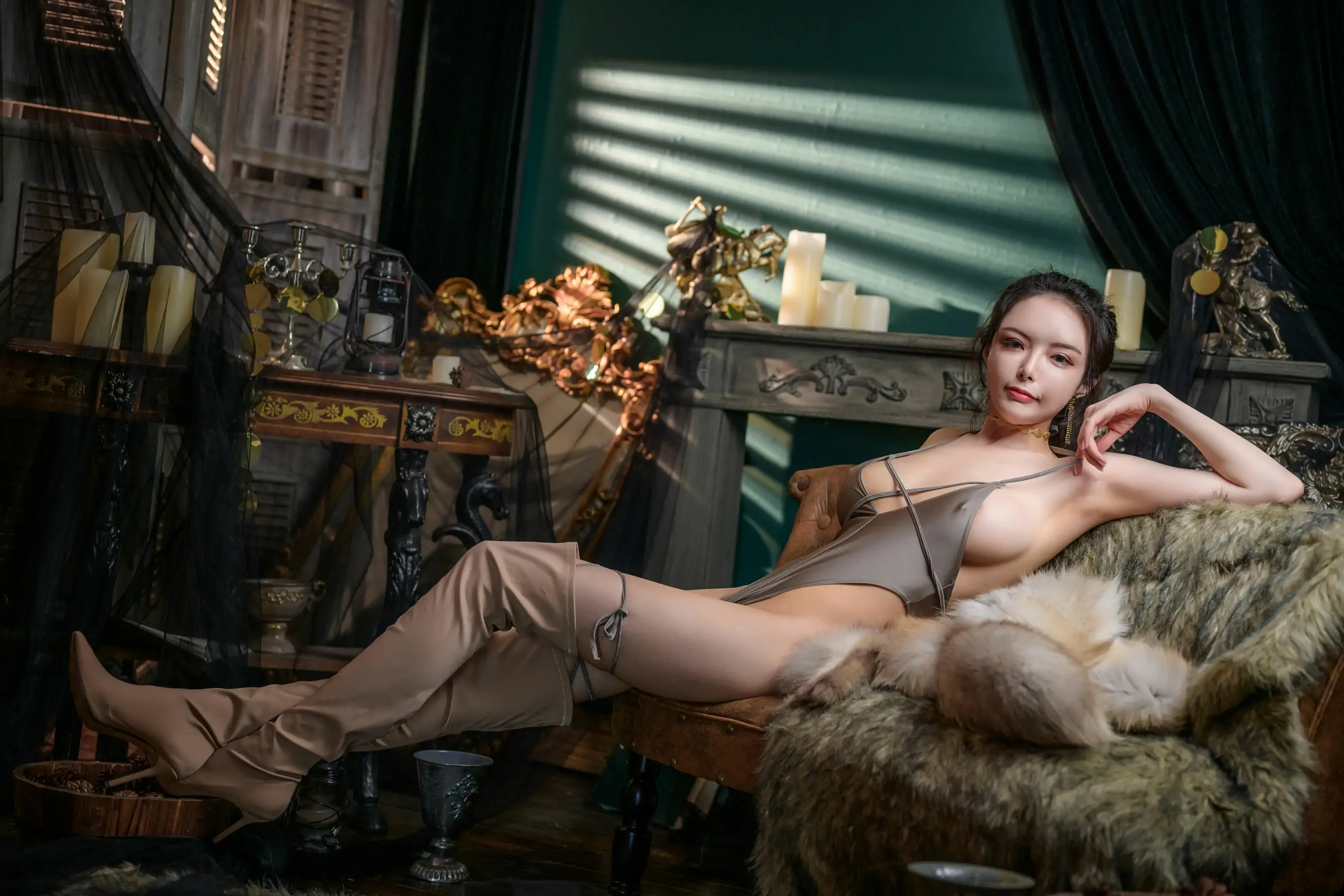 [福利COS] 秋和柯基(夏小秋秋秋) - 暗金色连体衣(45P)