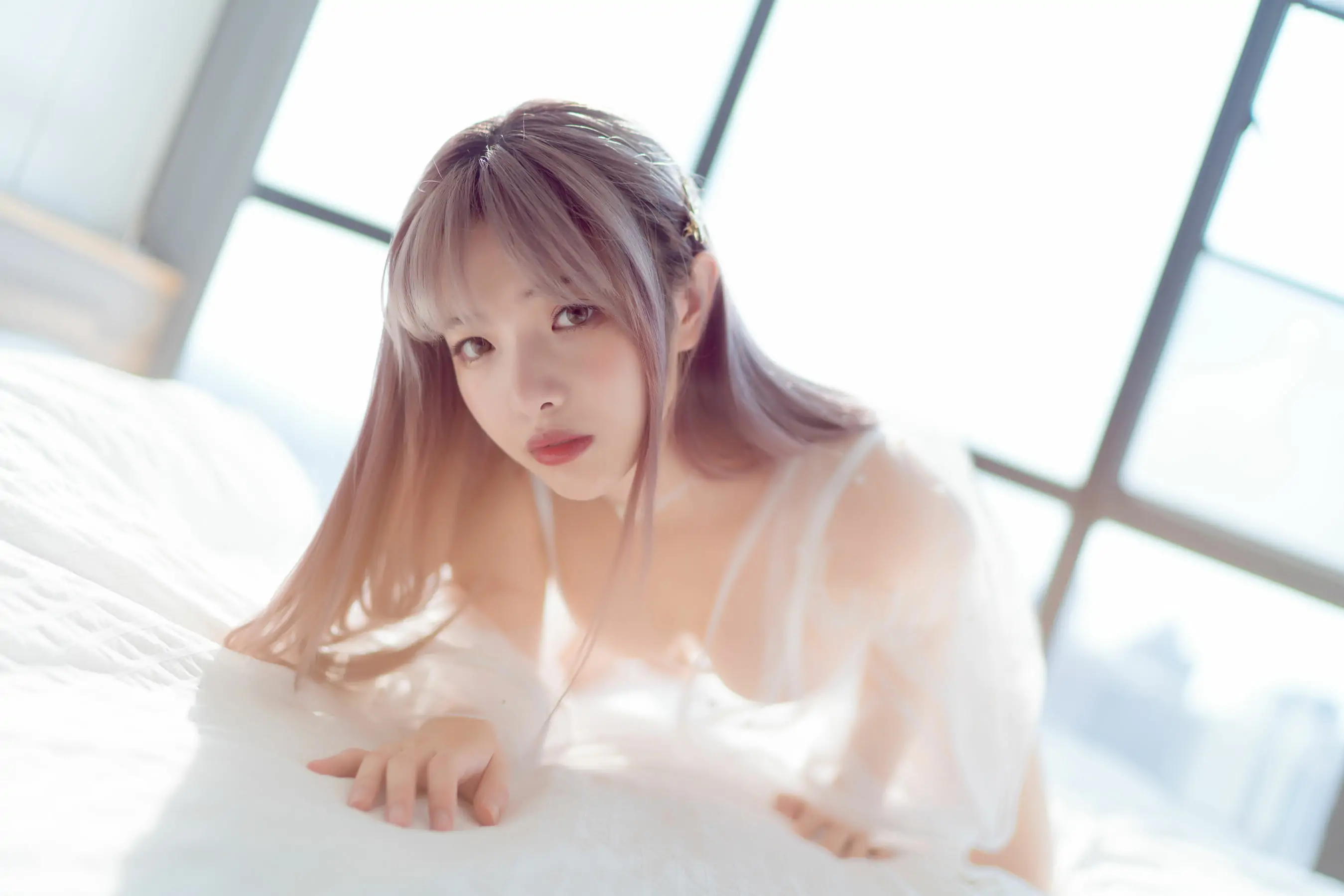 [Cosplay写真] 动漫博主雯妹 - 白色镂空(50P)