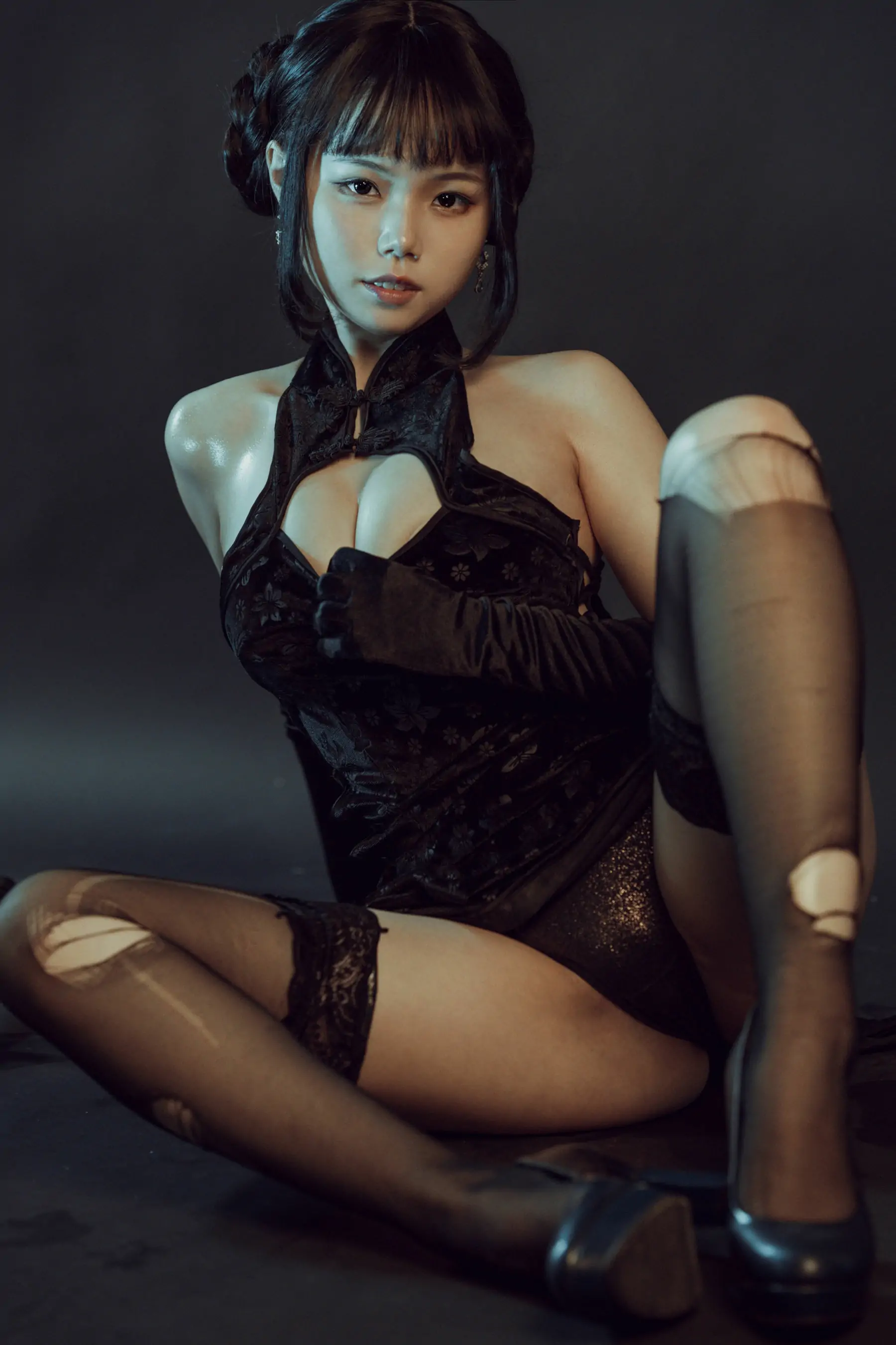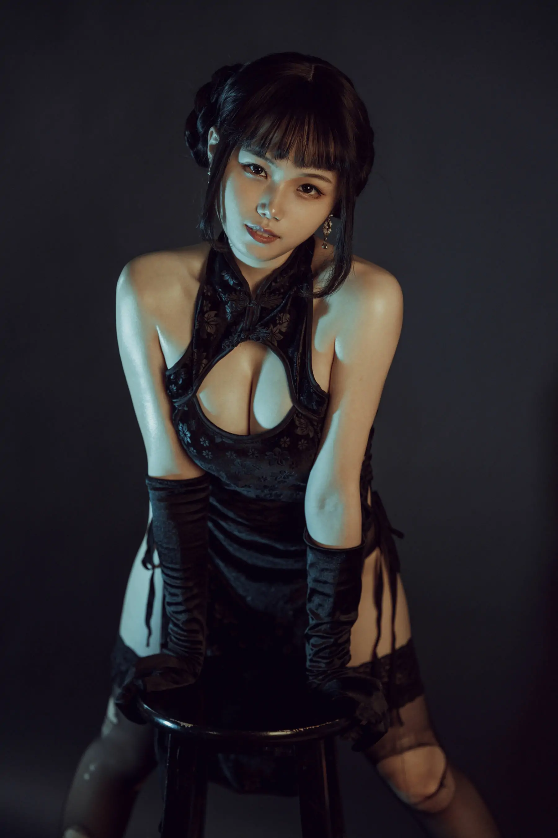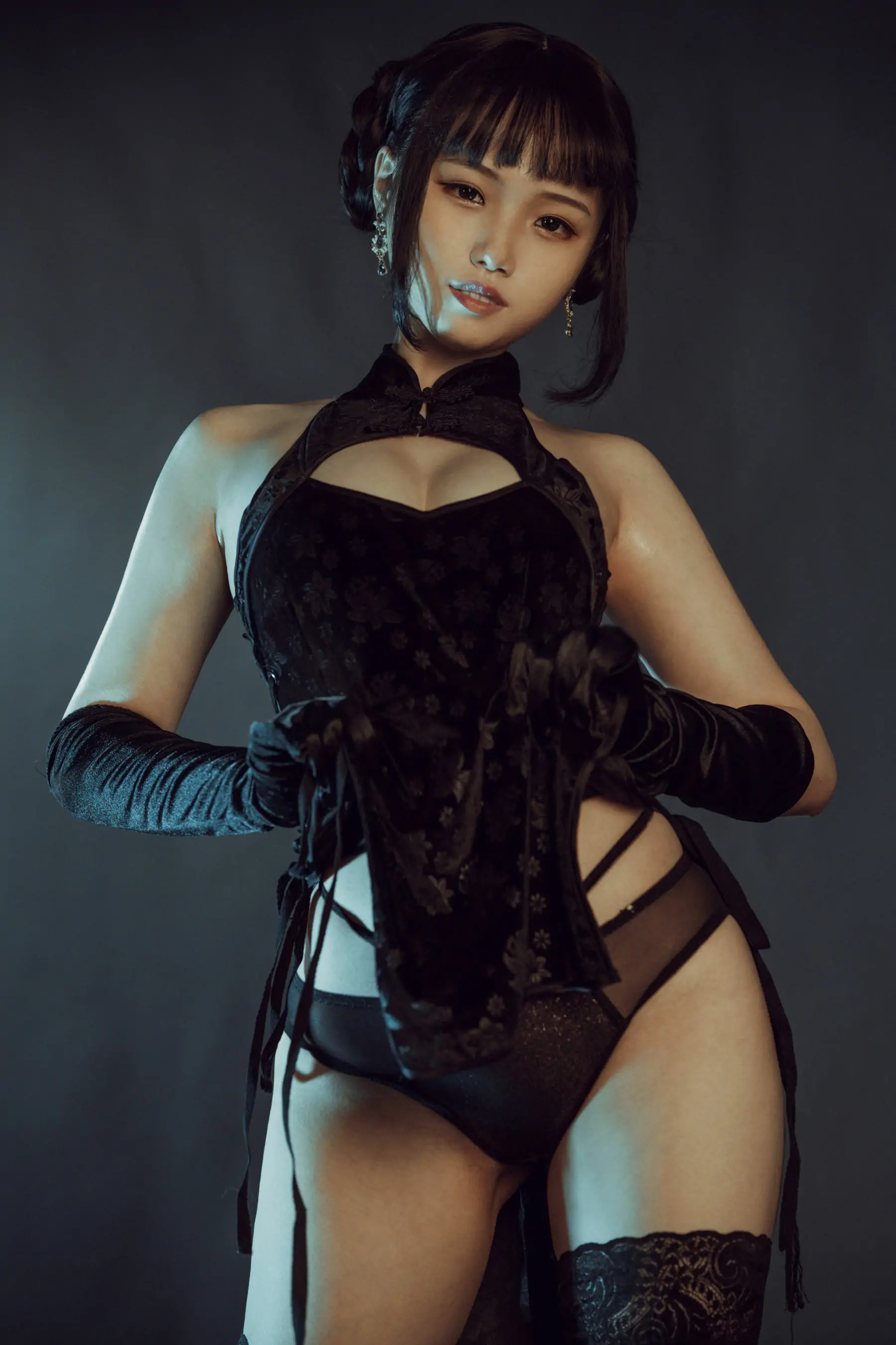 [网红COSER] 七月喵子 - 黑旗袍(32P)
