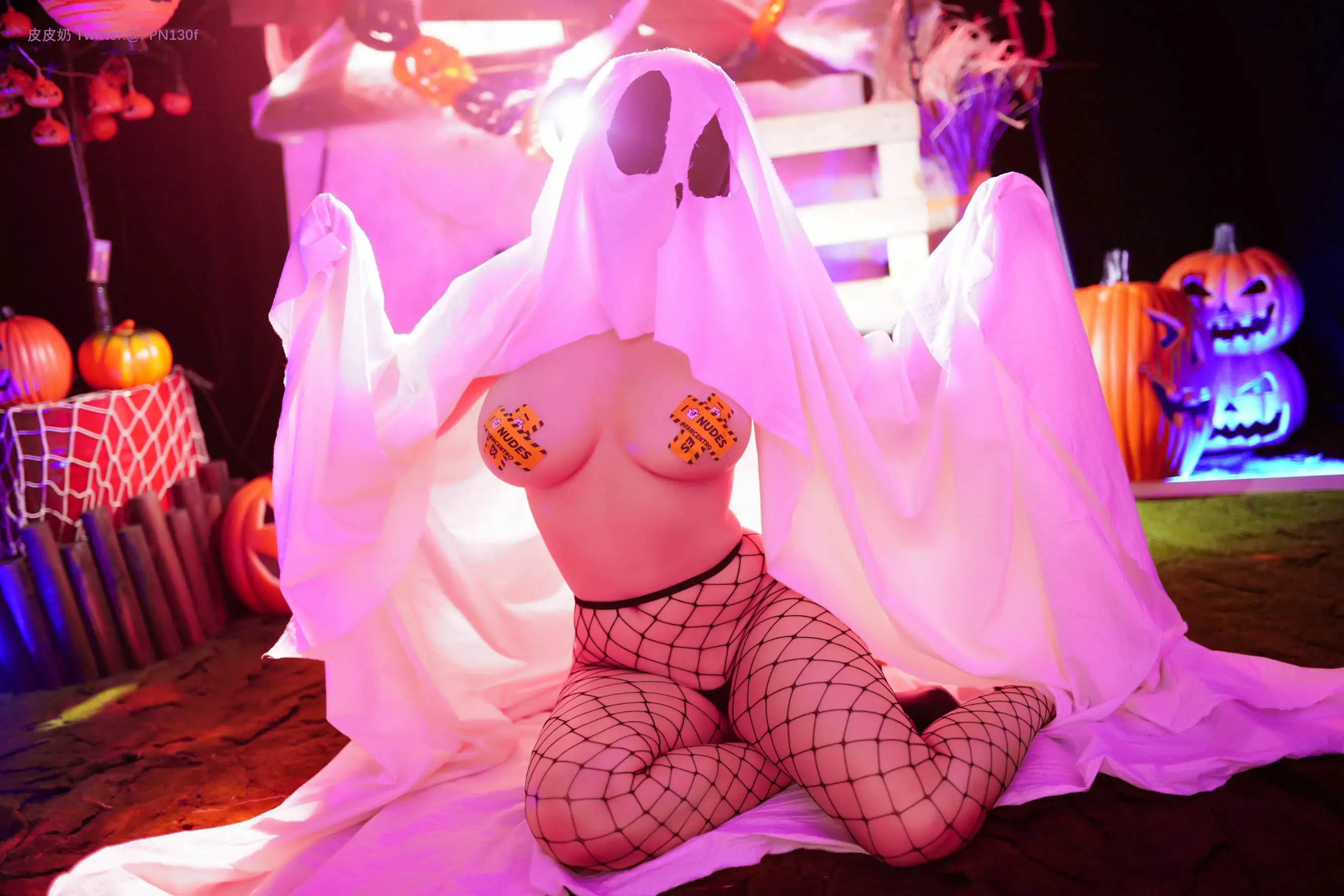 [网红COSER] 皮皮奶可可爱了啦 - 万圣节幽灵(68P)