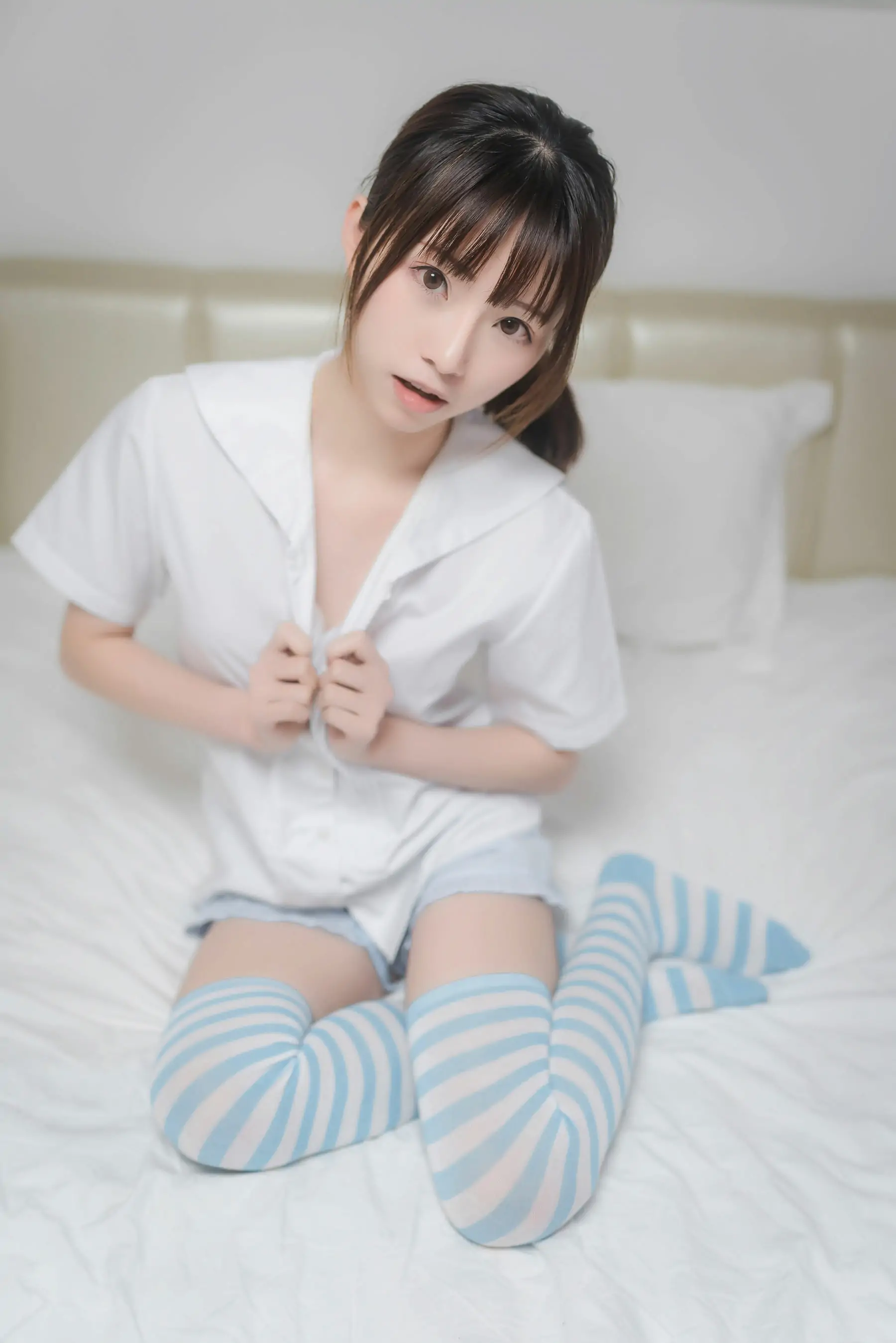 [Cosplay] 动漫博主Kitaro_绮太郎 - 蓝白条纹袜(42P)